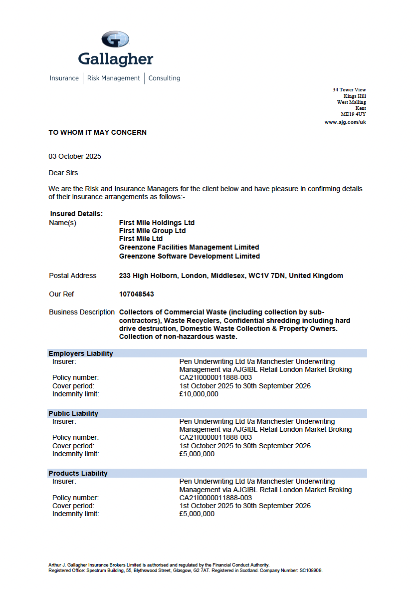 View and download our policies, certificates, licenses and insurances