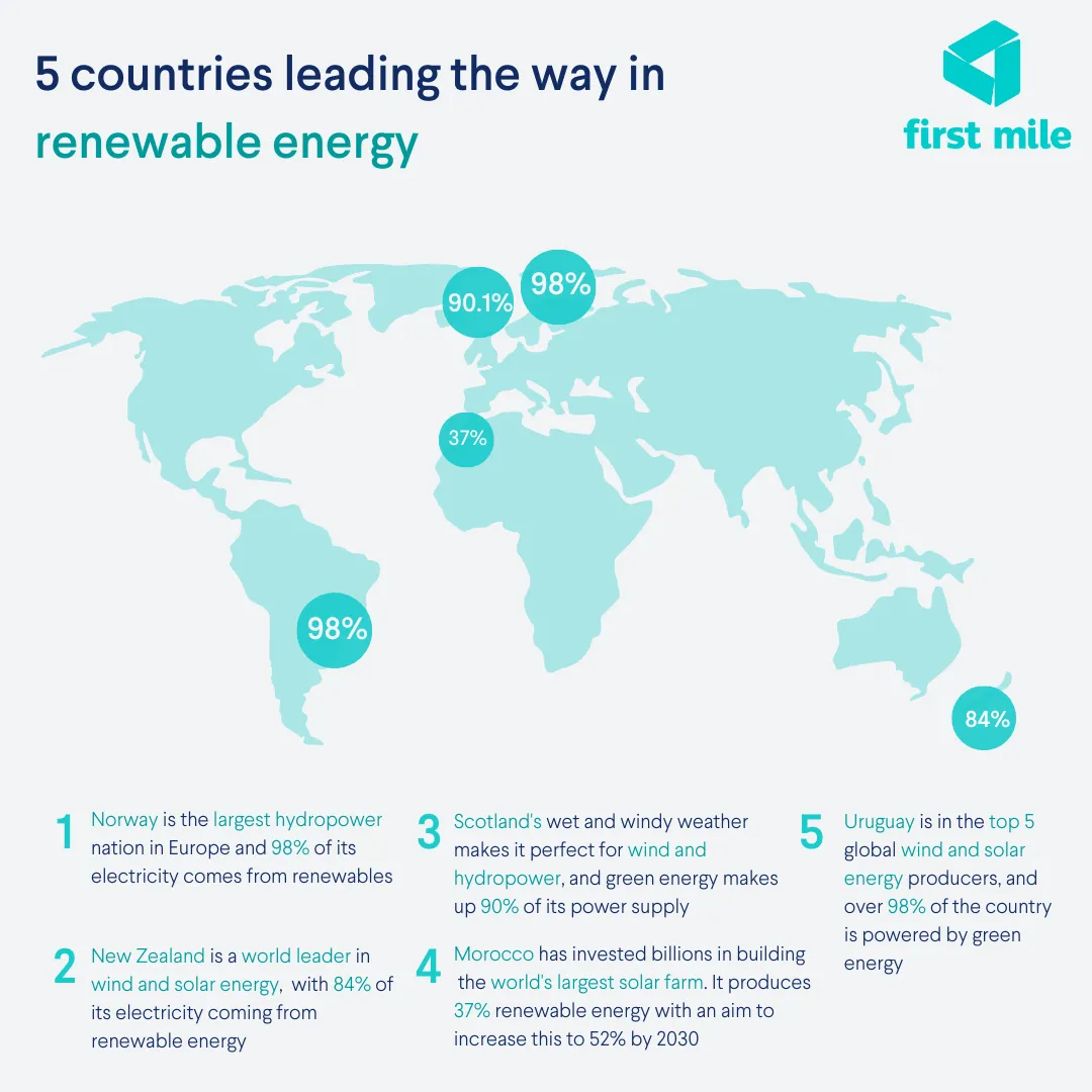 Which five countries are leading the way in the transition to renewable energy?